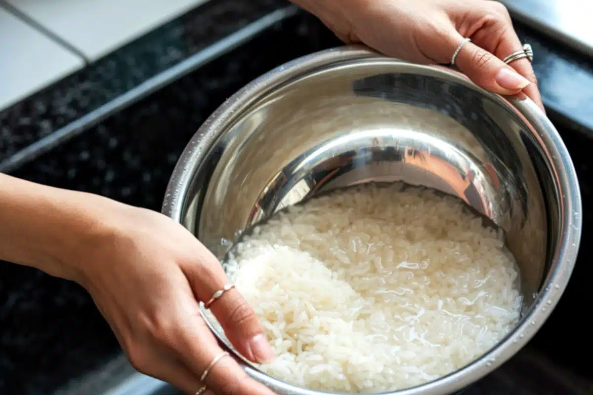 Rinsing rice under cold water removes excess surface starch, which is the main cause of sticky, gummy rice. Rinse until the water runs mostly clear for lighter, fluffier results.