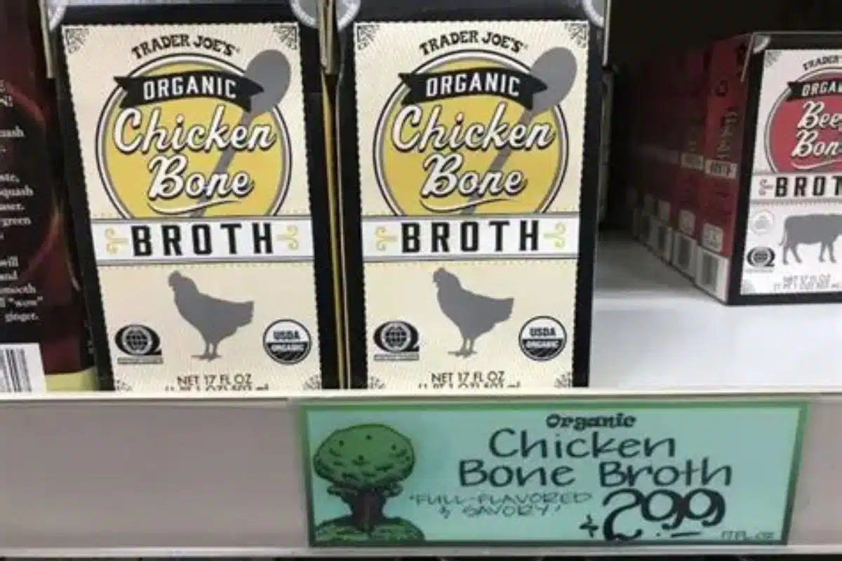 Rich, flavorful, and versatile, Trader Joe’s chicken bone broth is great for soups, sauces, risotto, and cooking grains. It adds depth you won’t get from plain water and keeps dishes tasting homemade.