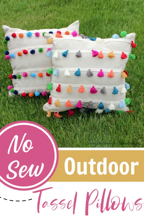 Pillows! This DIY No Sew Outdoor Tassel Pillows will add flair to your home and will not take all day to make. Here is how to make these outdoor pillows.