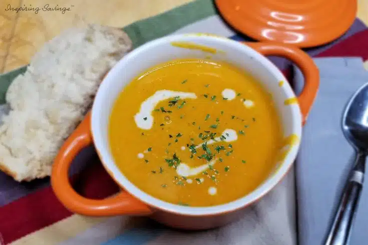 Butternut squash soup is one of my absolute favorite fall dishes. It is warm and comforting. The sweet, squashy, and slightly earthy flavor that comes from a butternut squash is one of my favorite fall dinners for cooking once the weather starts turning.