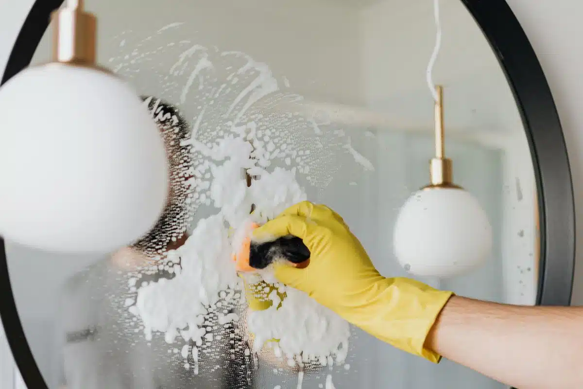 Many people start with the floor or toilet first, which leads to re-contaminating cleaned areas. Always clean from top to bottom so dust and drips fall onto surfaces you haven’t cleaned yet. Order matters more than most people realize.